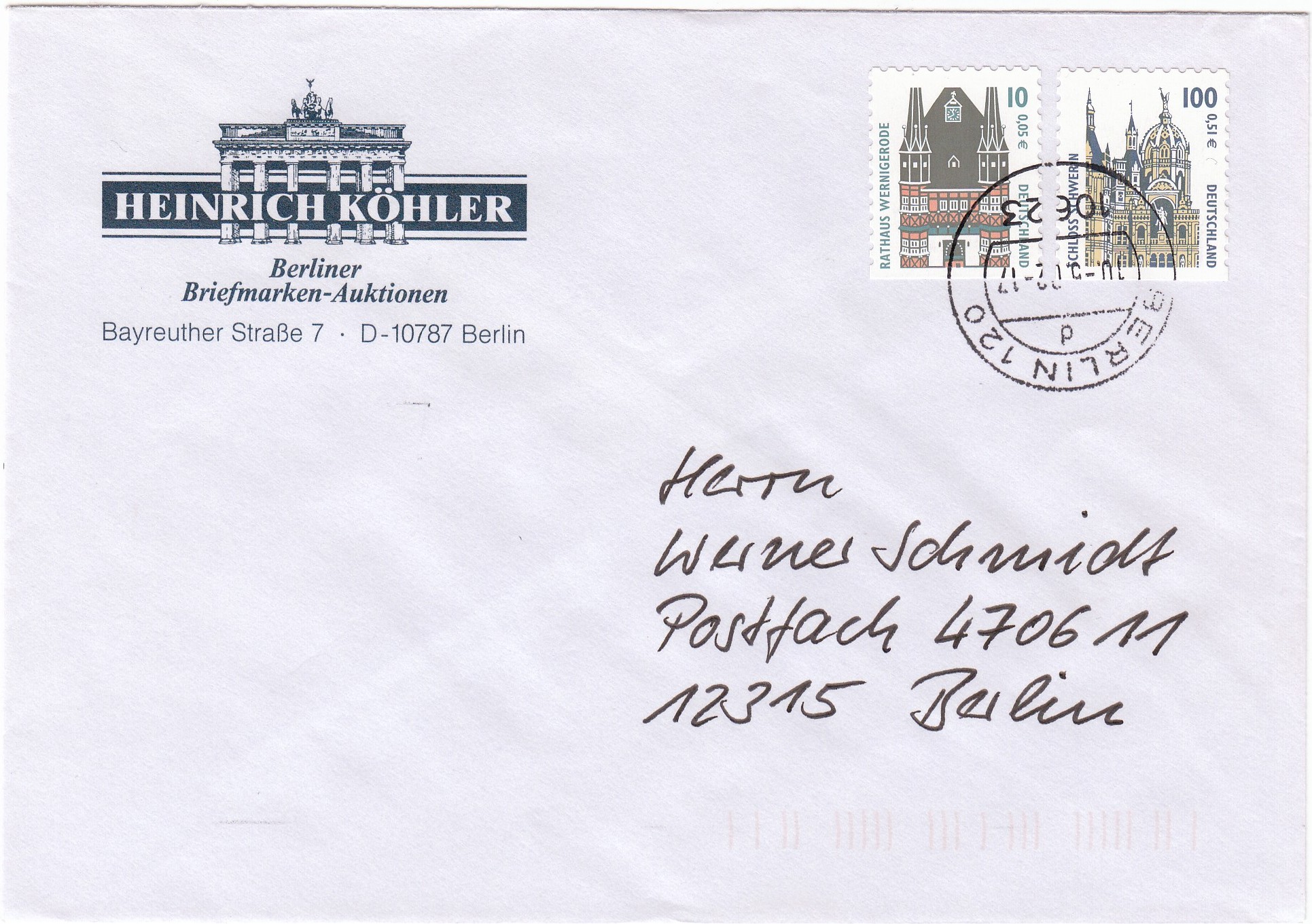 Ich zeige hier einen eindeutig philatelistisch beeinflußten Standardbrief, denn er stammt von einem Briefmarken-Auktionshaus, der aber dennoch mit Sicherheit als Bedarfsbrief einzustufen ist: ein philatelistischer Bedarfsbrief halt.