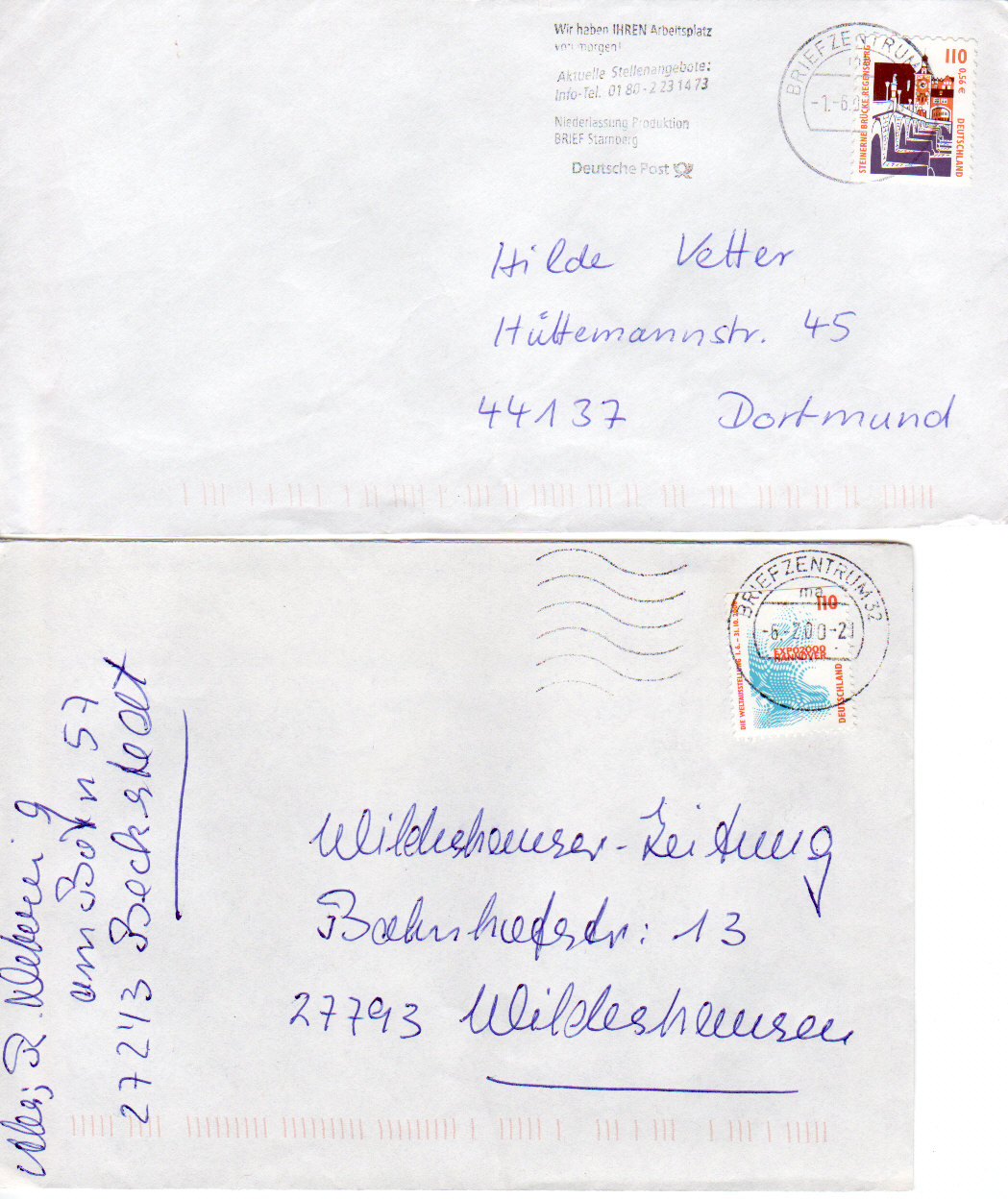 oisch, Du hast mich angestiftet, nun zeige ich hier mal echte Massenware aus dem Bedarf, nämlich einen Standardbrief der Portostufe 110 Pf!!!