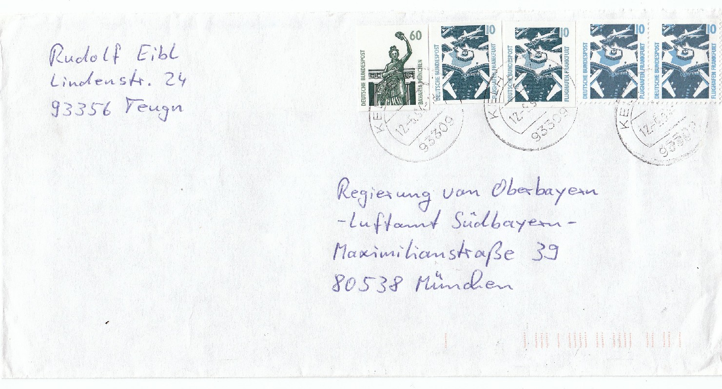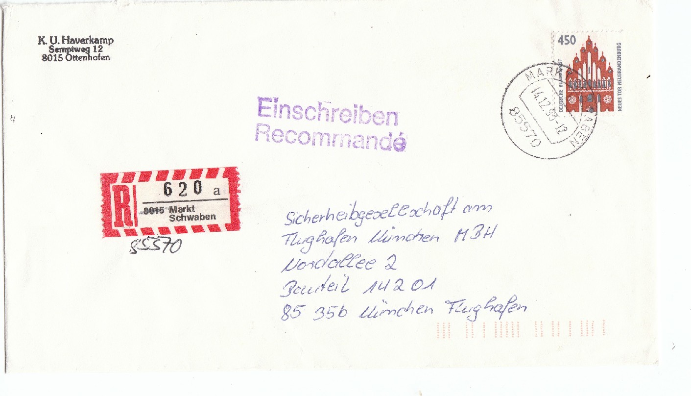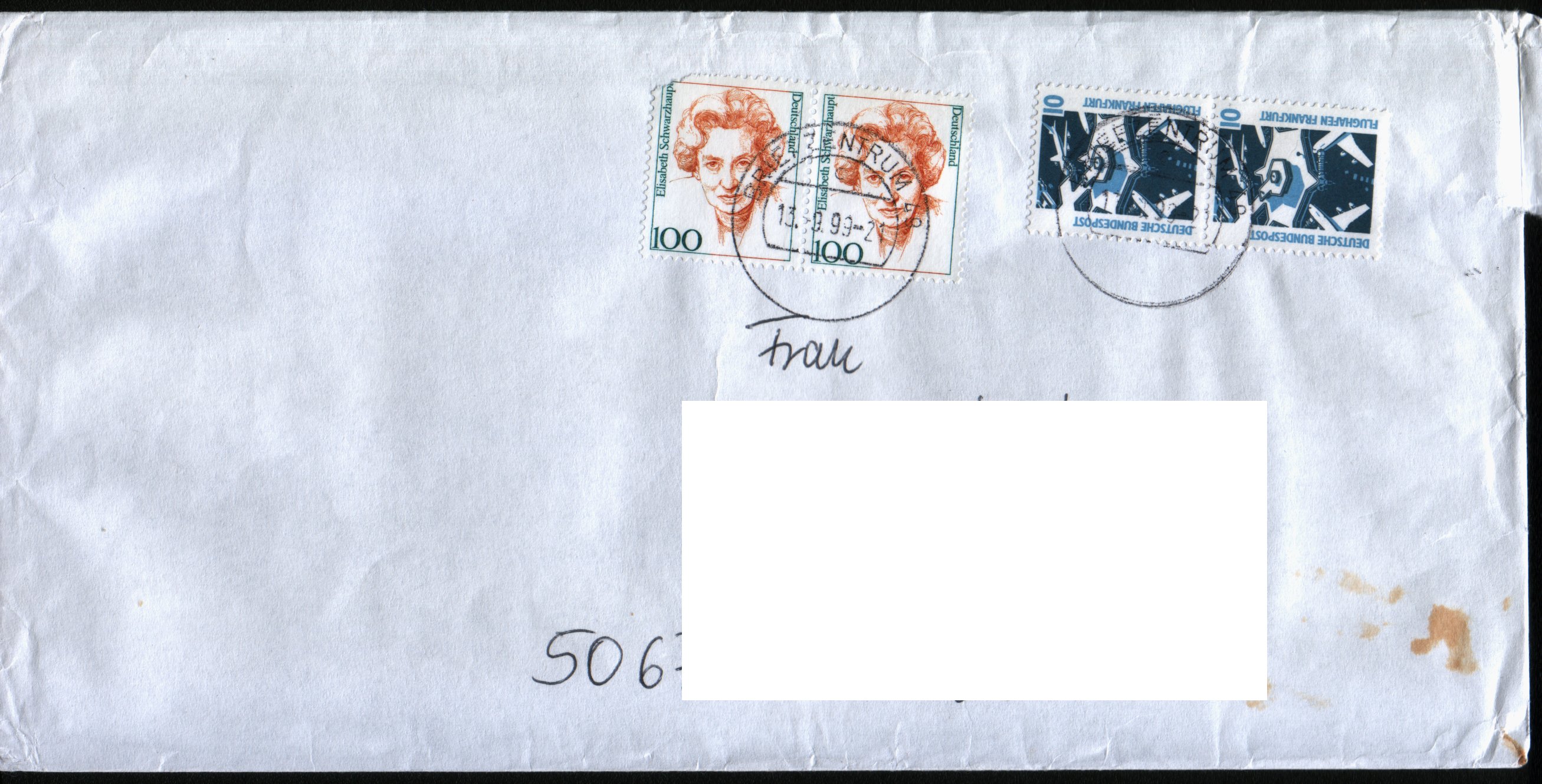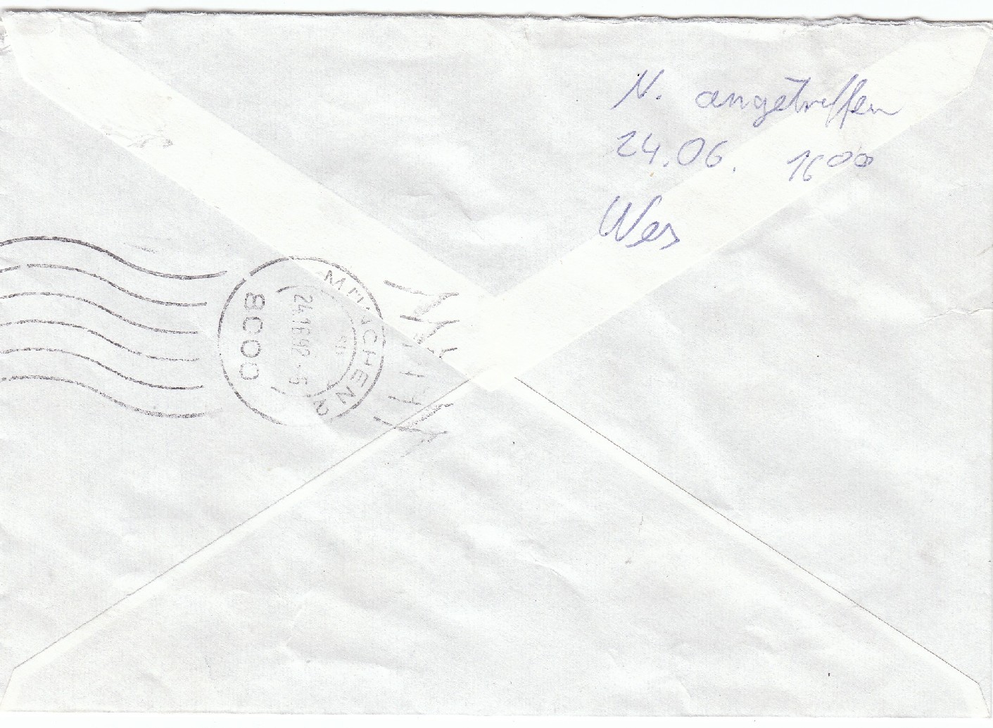 Daher mußte letztendlich die gute alte Handstempelung wieder ran und der Beleg wurde am 9.11.96 entwertet per Handstempel BRIEFREGION 76.