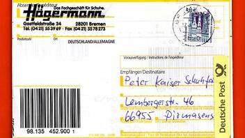 Obwohl im Orstverkehr von Bergheim gelaufen wurde dieser Beleg linearcodiert "621056" entsprechend der PLZ sowie der Prüfziffer "6".