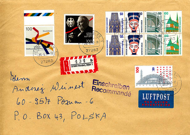Einschreiben 350 = 750 Pf,TSt 27283 VERDEN ALLER 1 d vom 20.-6.97