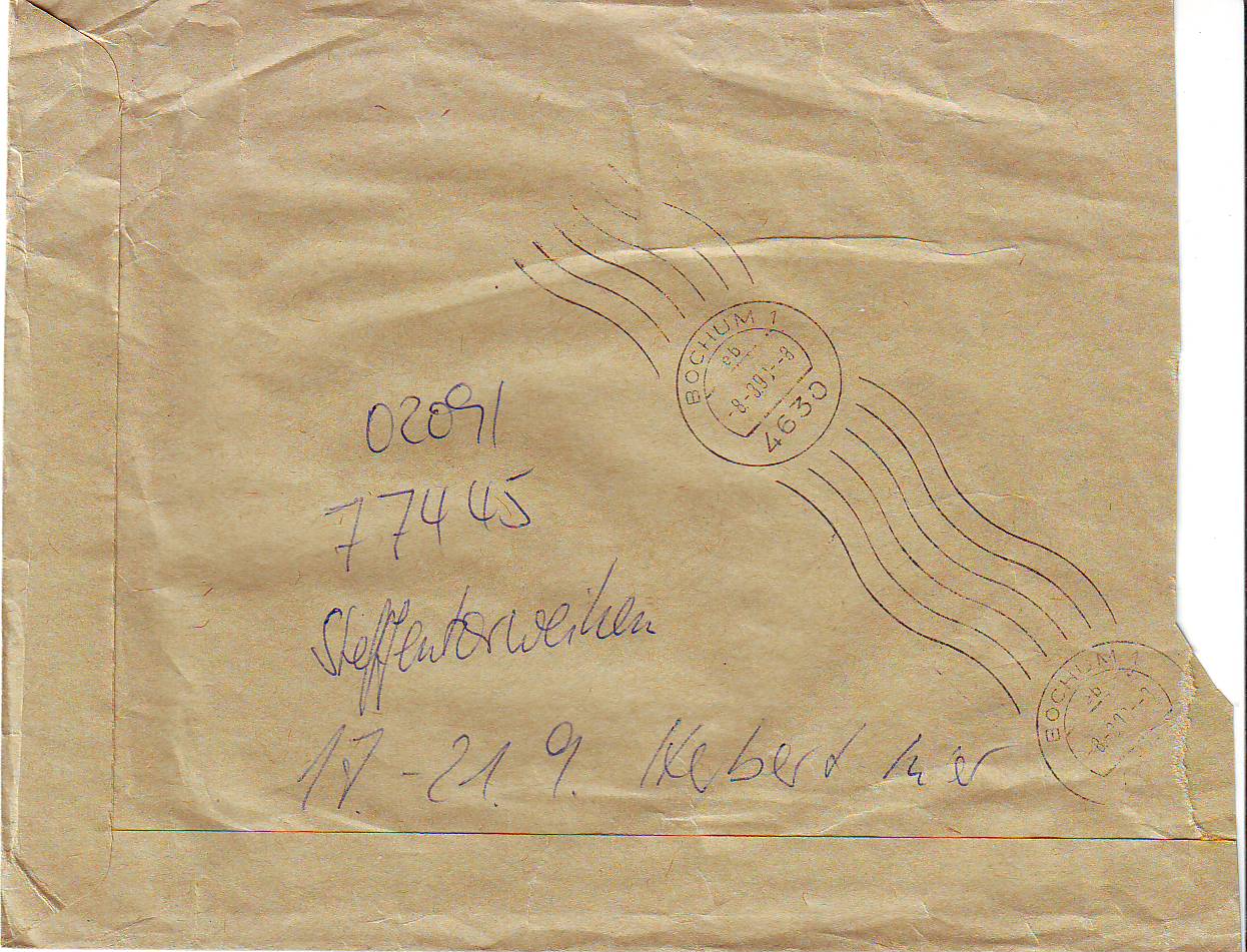 angekommen am: 08.03.90 in Bochum (siehe Rückseite)