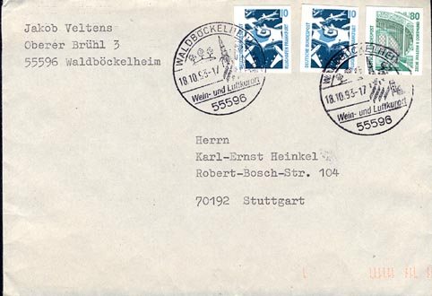 mit SSt 55596 WALDBÖCKELHEIM v. 18.10.93 entwertet, codiert