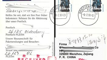 Lt. Sendungsstatusabfrage "Die Sendung wurde am 13.04.2004 an das Internationale Briefzentrum zur Weiterbeförderung ins Ausland übergeben"