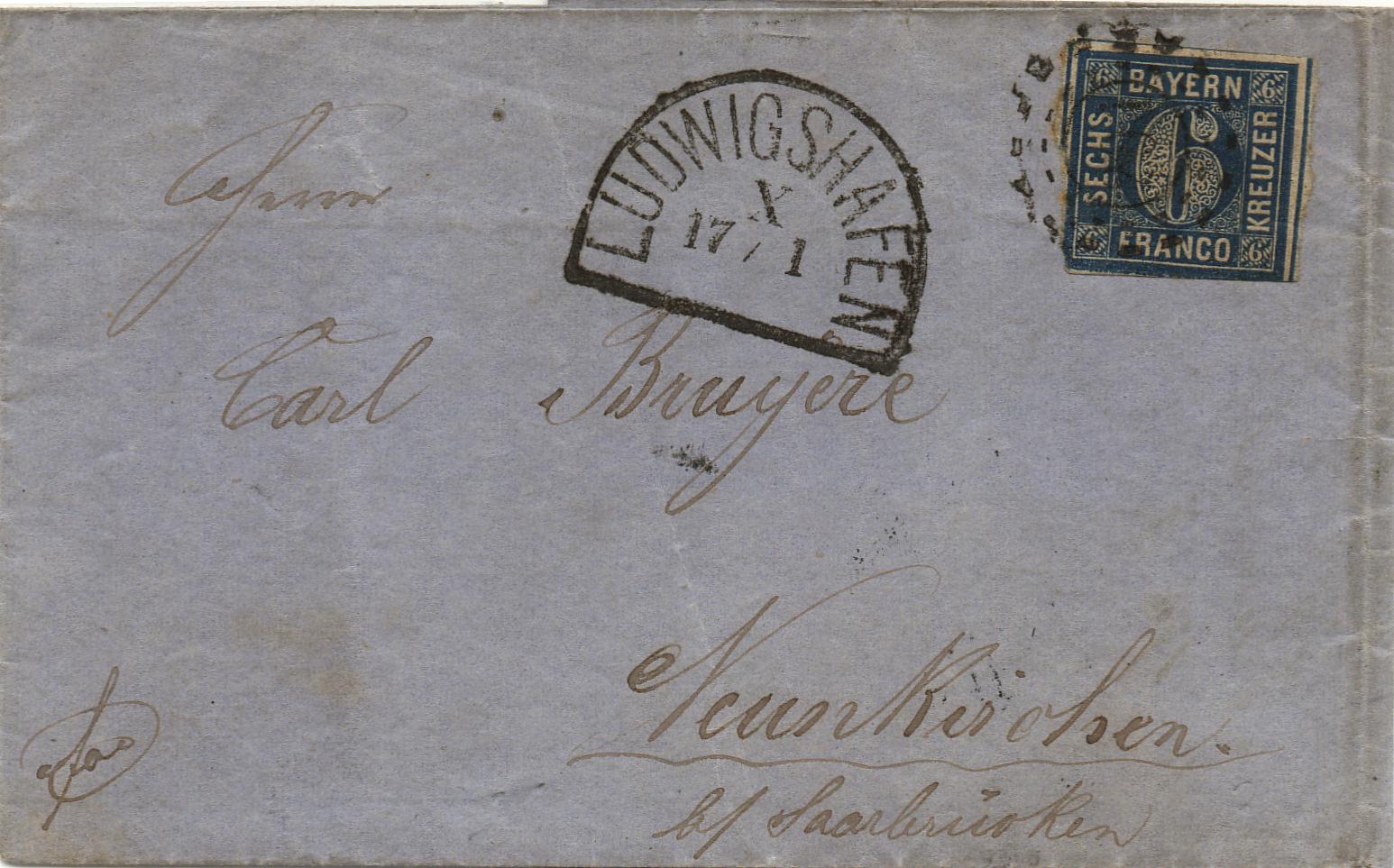 Zur Reaktivierung dieses threads mal eben schnell ein unspektakulärer Brief vom 17.1.1863 von Ludwigshafen nach Neunkirchen b. Saarbrücken - Inhalt war eine Rechnung über 1 Sack Mehl.