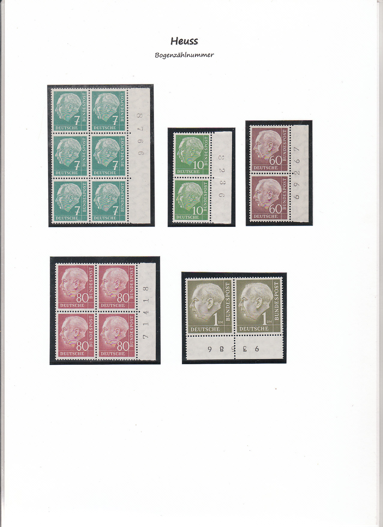 Heuss mit Bogennummer