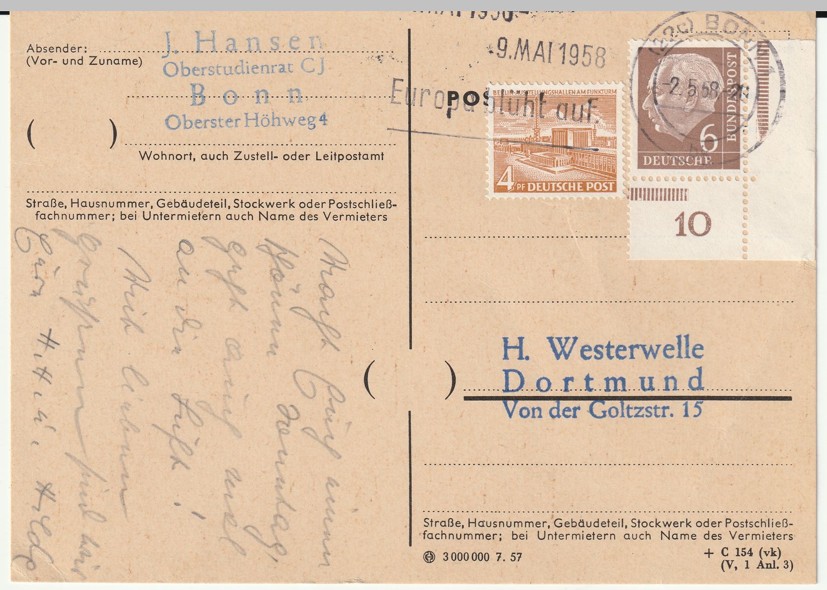 Auf einer Weilheimer Briefmarkenausstellung (der ortansässige Briefmarkensammler-Verein war der Ausrichter) habe ich diese Paketkarte freigelegt.
