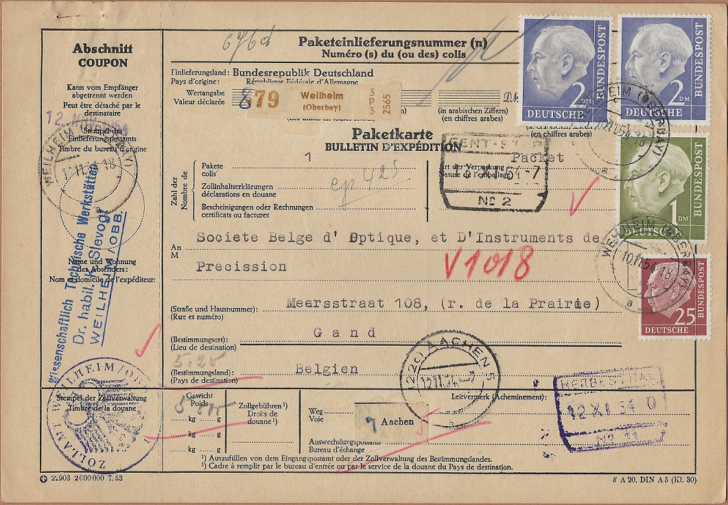 Auf einer Weilheimer Briefmarkenausstellung (der ortansässige Briefmarkensammler-Verein war der Ausrichter) habe ich diese Paketkarte freigelegt.