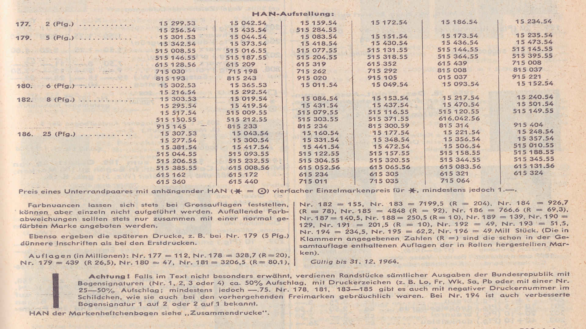 ergänzend zu den bisherigen Rückmeldungen kann ich bestätigen, dass die HAN 15 044.54 2 der MiNr. 179 im Michel Deutschland-Spezial 2012 nicht mehr verzeichnet ist [1, S. 920]. Der Zeitraum der Streichung lässt sich damit auf die Jahre 2008 bis 2011 eingrenzen.