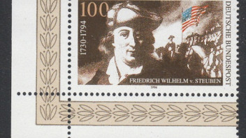 Preußischer Offizier und US-amerikanischer General. Friedrich Wilhelm von Steuben wurde 1730 in Magdeburg geboren. Er wurde 17-jährig Soldat und 1758 Adjutant im Stab Friedrichs des Großen. Von 1764 bis 1775 war er Hofmarschall beim Fürsten von Hohenzollern. 1777 reiste von Steuben nach Nordamerika. Der US-amerikanische Präsident George Washington übertrug ihm die Generalinspektion der US-amerikanischen Streitkräfte. Von Steuben rekrutierte eine Truppe, die er mit Erfolg gegen die Engländer führte. Die Erkenntnisse von Steubens wurden in einem Reglement zusammen gefasst, das unter der Bezeichnung "Blue-Book" in der amerikanischen Armee bis 1812 in Kraft war. Noch heute ehren die USA von Steuben mit den "Steubenparaden" in New York und Philadelphia.