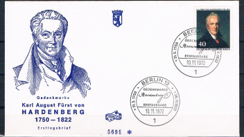 wird dieser FDC + ESST + BM-DBPB herausgegeben .Geboren wurde der Gute 31.05.1750 um ein großer Staatsmann zu werden und gestorben ist er am 26.11.1822 -