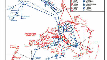 Sie wird heute als 1. moderne Seeschlacht bezeichnet, da hier erstmals ca 5500 Matrosen mit 24 Schiffen zu den Fischen am Meeresgrund geschickt wurden :O_O: :( .