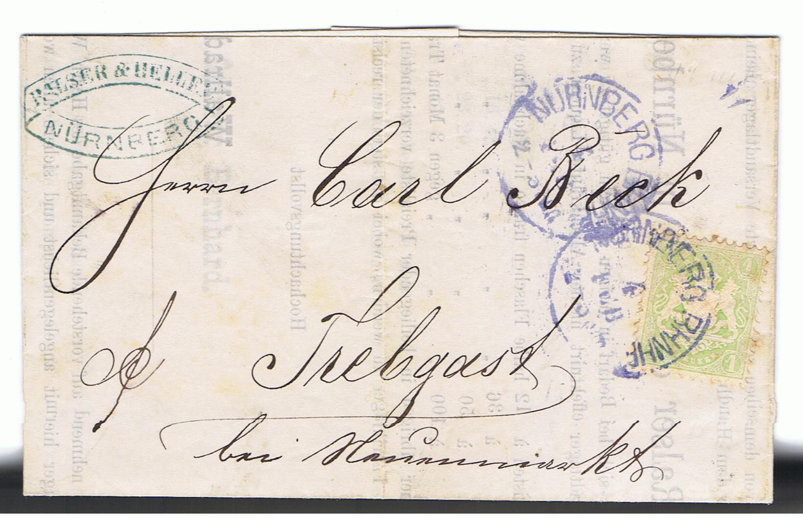 Schön, dass man neben das "f" für Franko "7 X re" für 7 Kreuzer recommandirt notierte, wie es die Vorschrift vorgab (damit man im Ausland sehen konnte, dass nicht 3 Kr. Franko und 7 Kr. Chargégebühr bezahlt worden waren (= wäre unterfrankiert!), sondern 10 Kr. Franko und