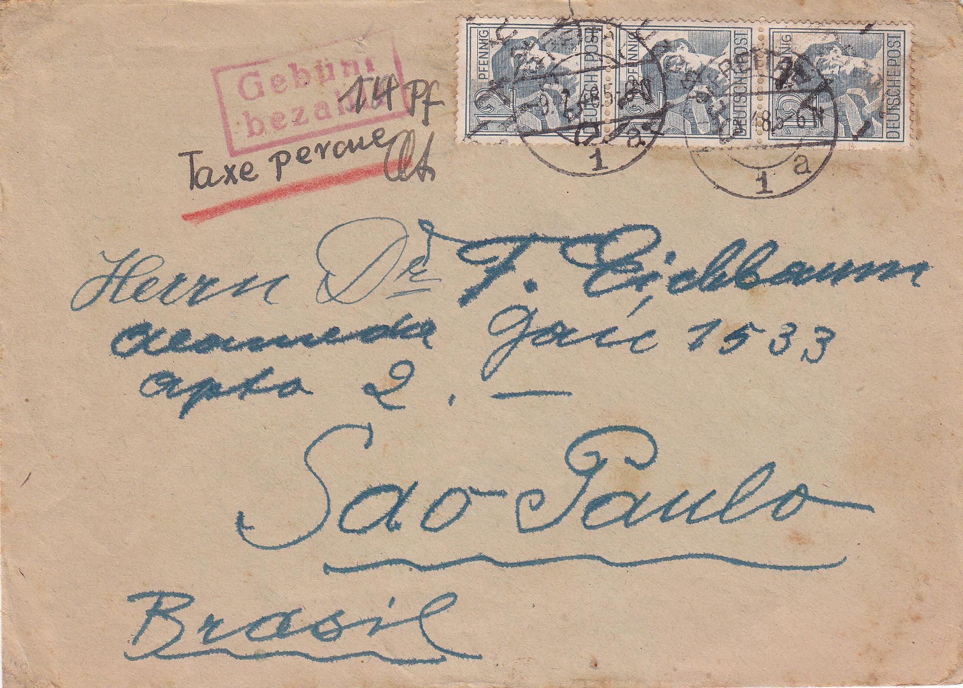 Ein seltener Handstempelbrief ging von Freital nach BRASILIEN!!