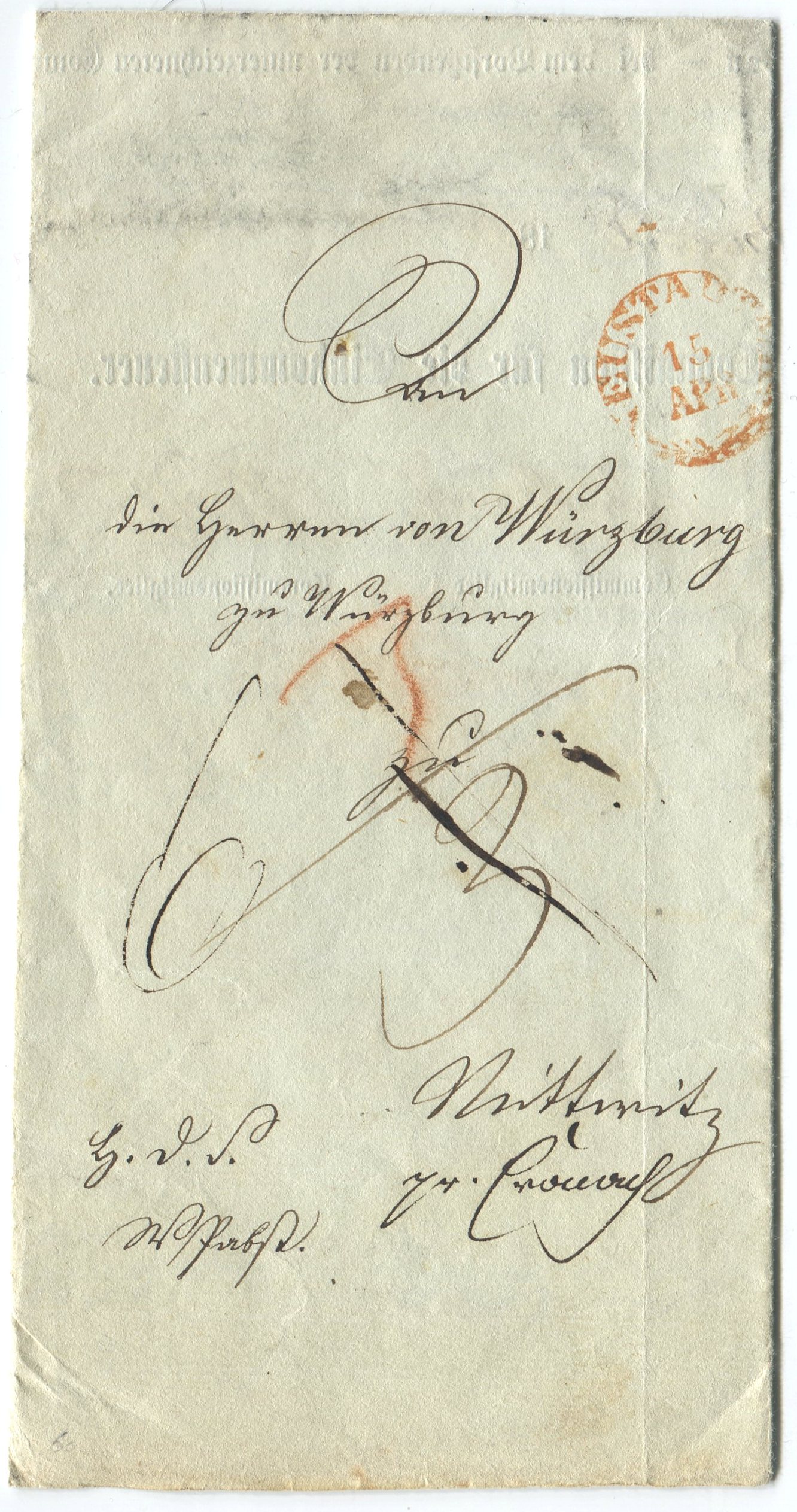 Ich durfte mal einen Teil der Korrespondenz und der Postscheine an die Barone von Würtzburg (von ca. 1800 bis 1870) einsehen, welche, wie auch immer, aus dem Archiv auf den freien Markt geworfen wurden.