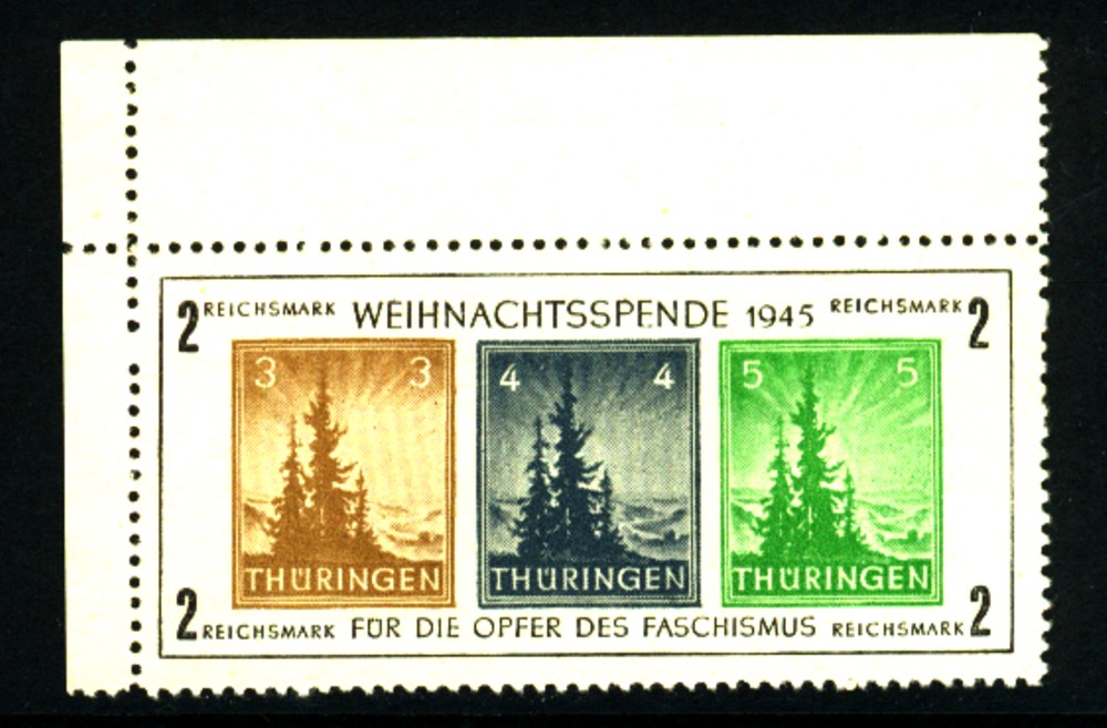 Der kleine Thüringen-Weihnachtsblock wurde im 6er Bogen gedruckt.