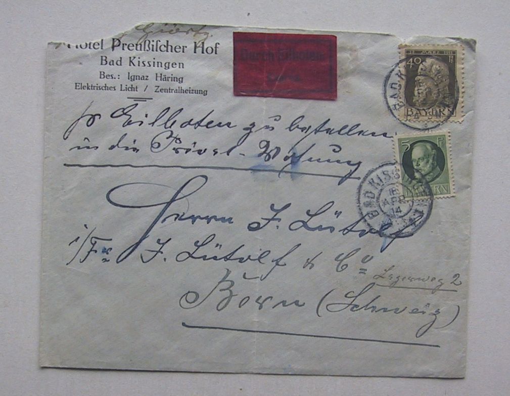 Ich kann hier einen Express Brief von Kissingen nach Bern (Schweiz) zeigen.