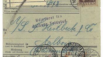 Diverse Transitstempel auf der Vorderseite. Rückseitig der Ankunftstempel "Aalborg 1.6.11"