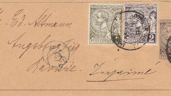 auch wenn es nicht mehr meine Zeit ist, verzückte mich ein Streifband aus Monaco nach Augsburg vom 19.6.1894 mit einer 5 C. Frankatur, so dass ich es mir als "Nachtisch" gönnte. ![]()