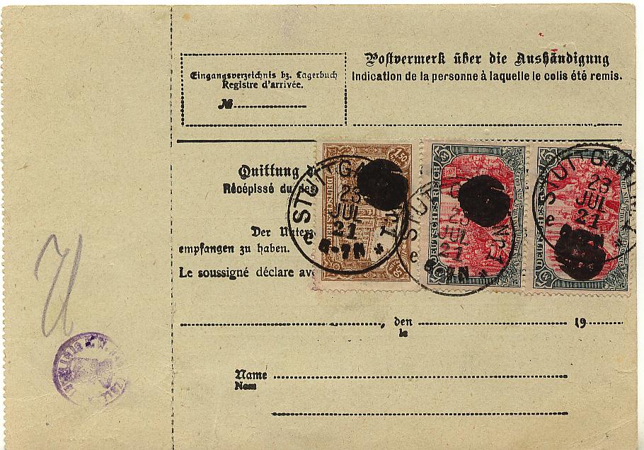 Kleine Anmerkung noch: solche Stempel (also Innendienststempel) werden auf Infla-Marken generell als "Stempel falsch" signiert bzw. ohne Signierung zurückgeschickt. Diese Stempel gehören nicht auf Freimarken abgeschlagen (das erklärt generell deren Seltenheit auf Marke - unabhängig von der Zeit, sind also auch auf Germania kleine Raritäten)!