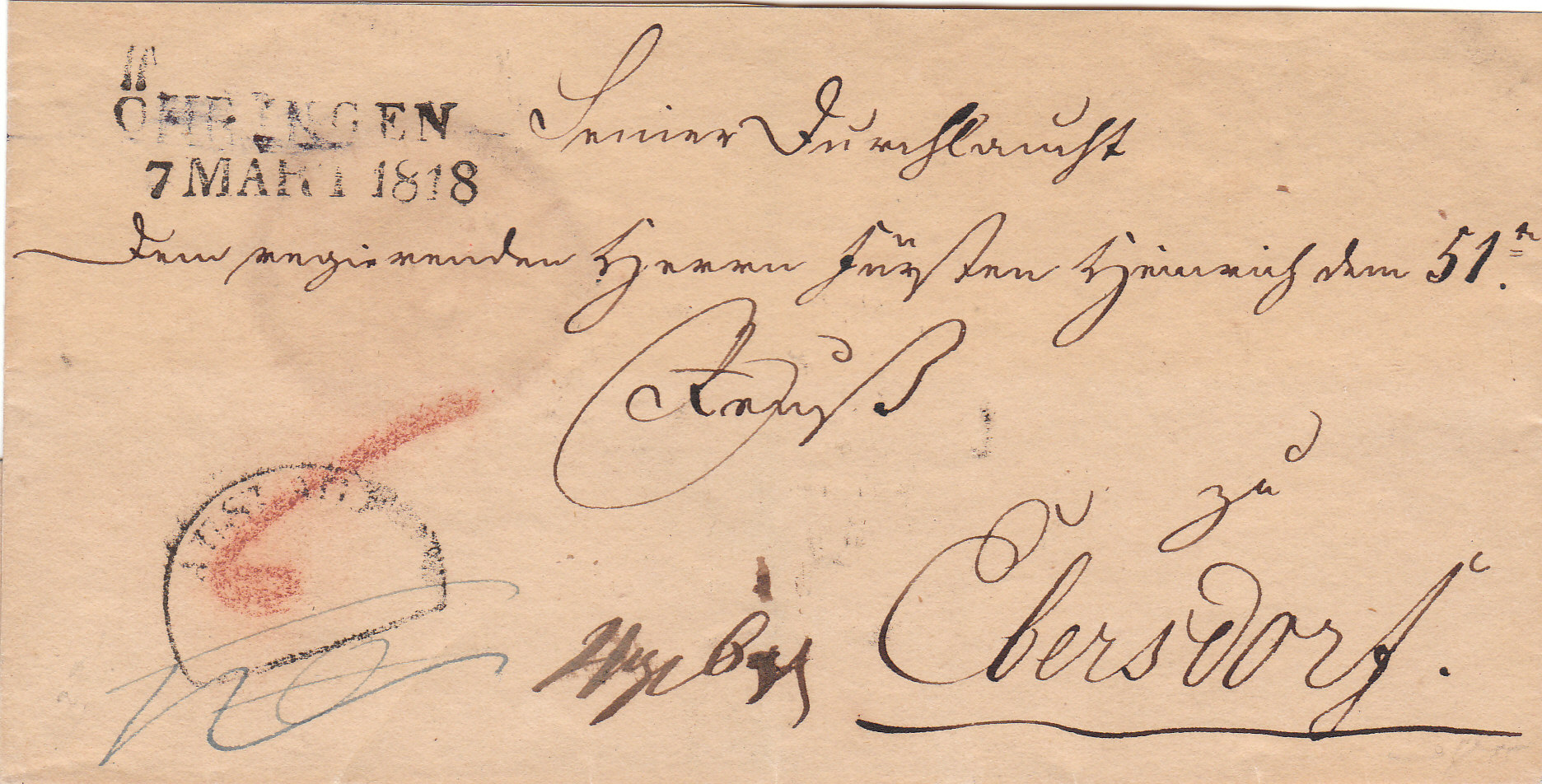 Dazu ein unfrankierter Brief von Feuchtwangen (Bayern)