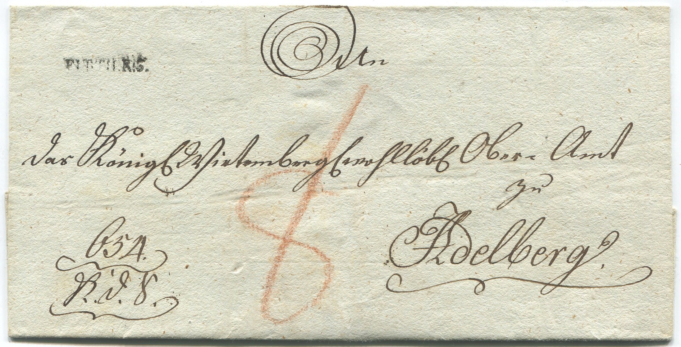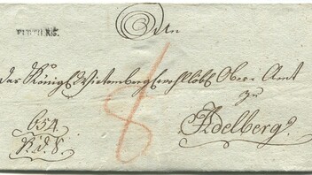 Zum Schluss Heute Abend zeige ich jetzt ein einfacher Brief von Regensburg nach Stuttgart. Der Brief hat in 1817 der Absender 8 Kr gekostet bis zum Grenze.
