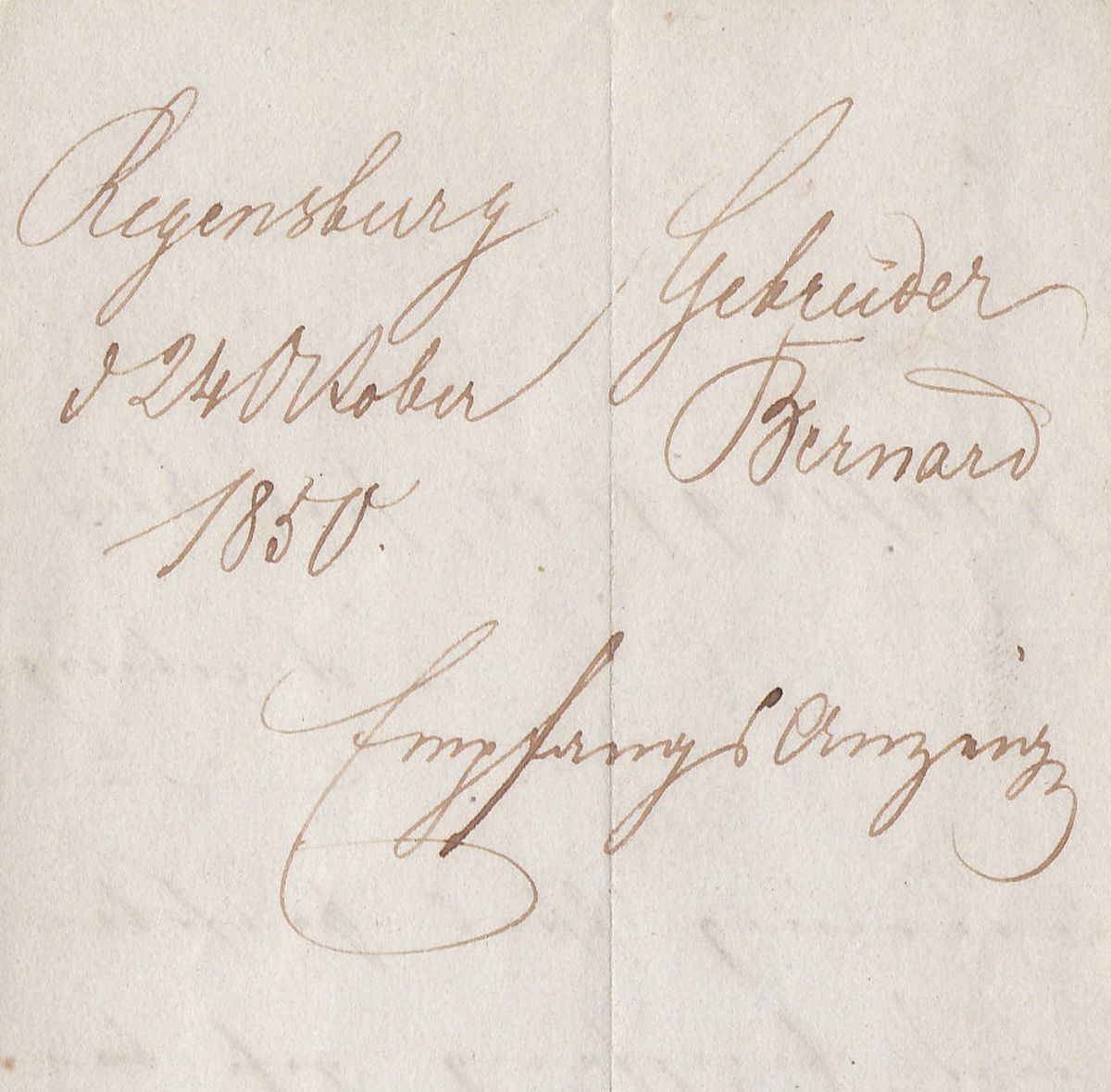 Gerichtet war sie ausweislich ihres Inhalts nach Neuburg an der Donau, welches innerhalb der 12 Meilen Zone von Regensburg lag. Drucksachen durfte nichts Geschriebenes beigefügt werden, außer der Unterschrift und dem Datum.