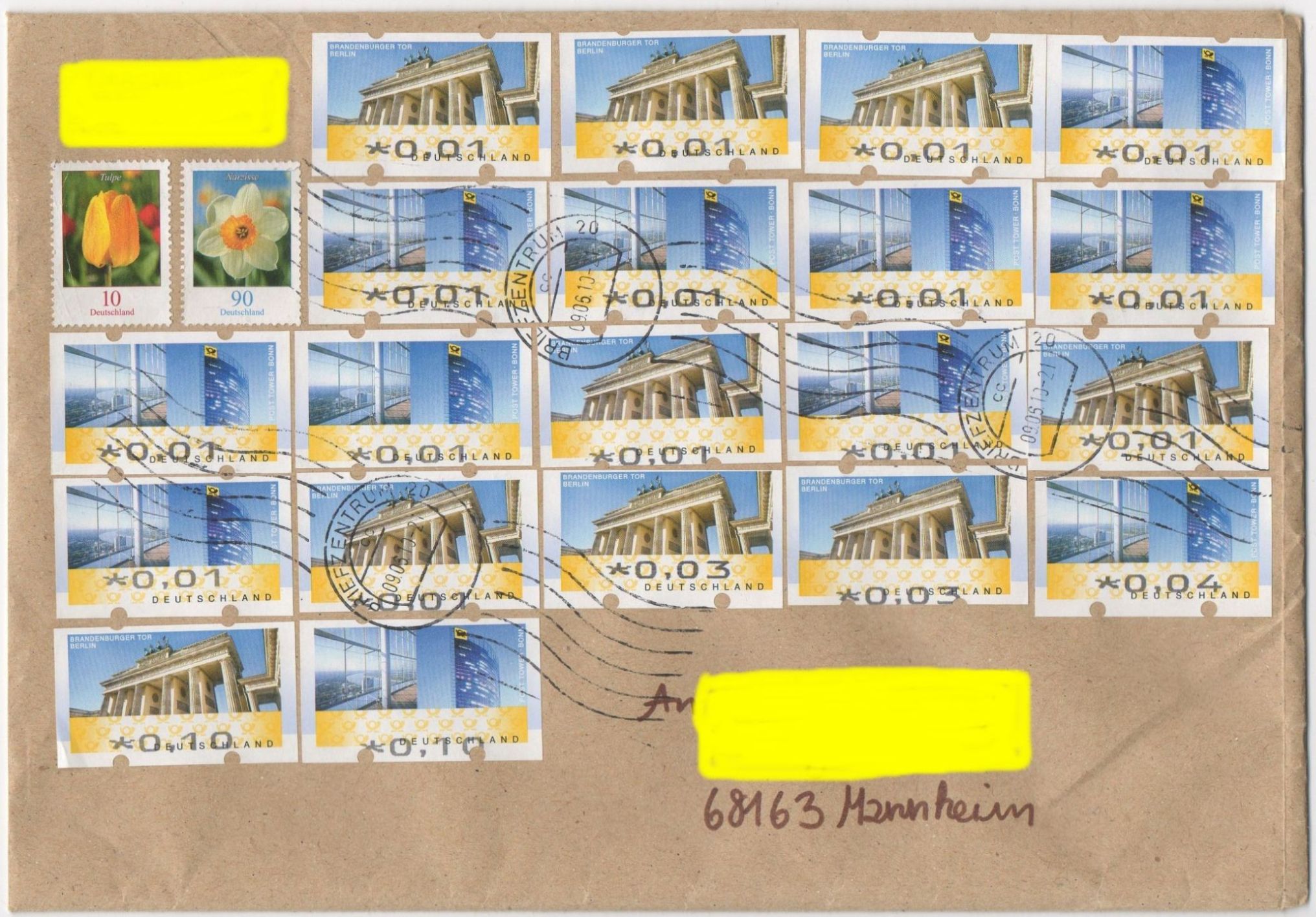 Heute habe ich mich vor Lachen in die Ecke geworfen: Eine absolute Frühverwendung! Die Marke ist im April 2010 erschienen und hier nachweislich schon am 13.9.09 im Verkehr gewesen. Da haben die im BZ 12 aber einen Bock ohne Ende geschossen, abgeschickt wurde der Brief garantiert am 13.8.10