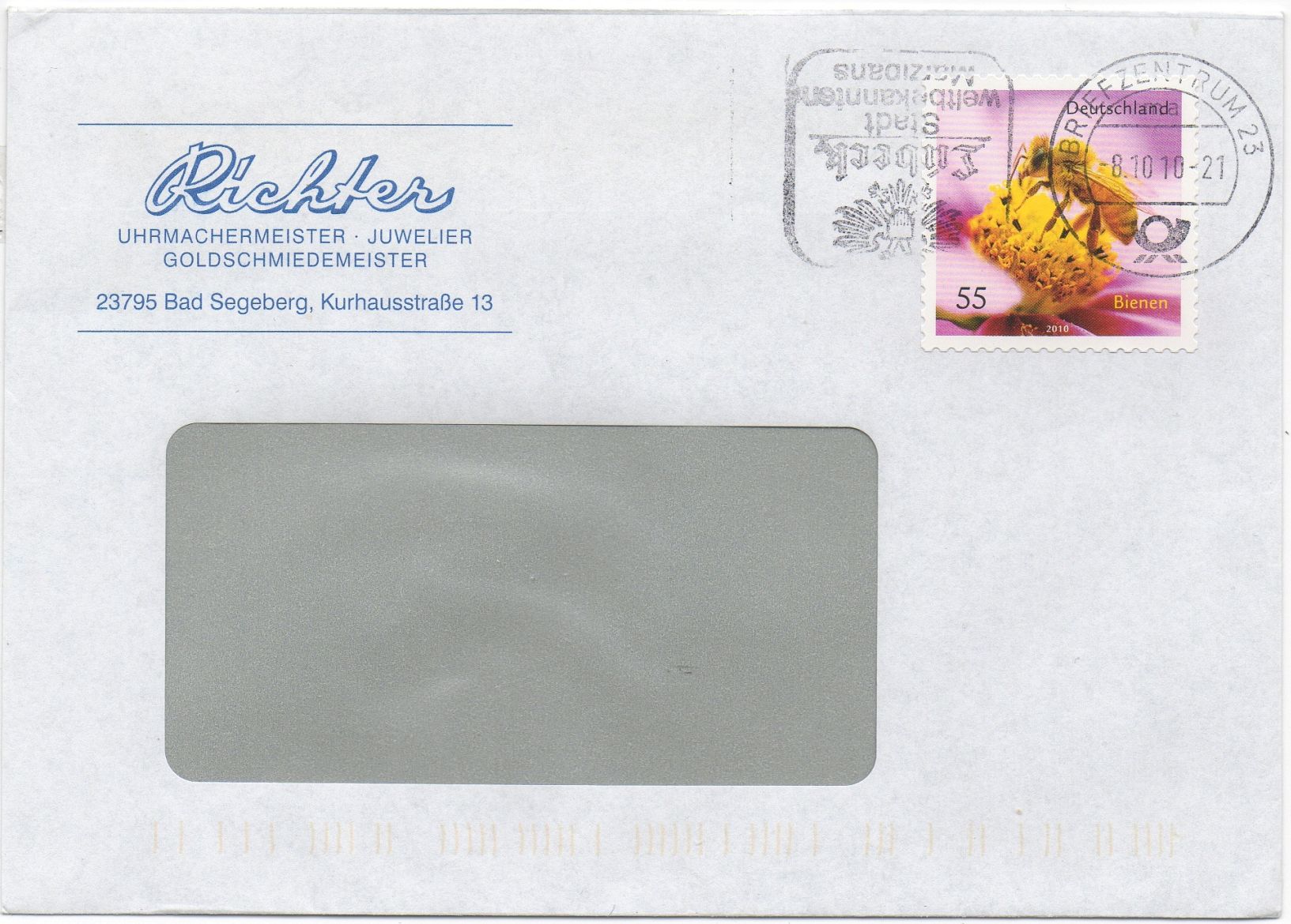 Diese Art "seltsame Stempel" habe ich gestern auch bekommen, allerdings aus dem BZ 20 (Hamburg), wo der Maschinenstempel ebenfalls so eingestellt war! -3.-0.10-16 (Uhr) und -4.-0.10-21 (Uhr)!