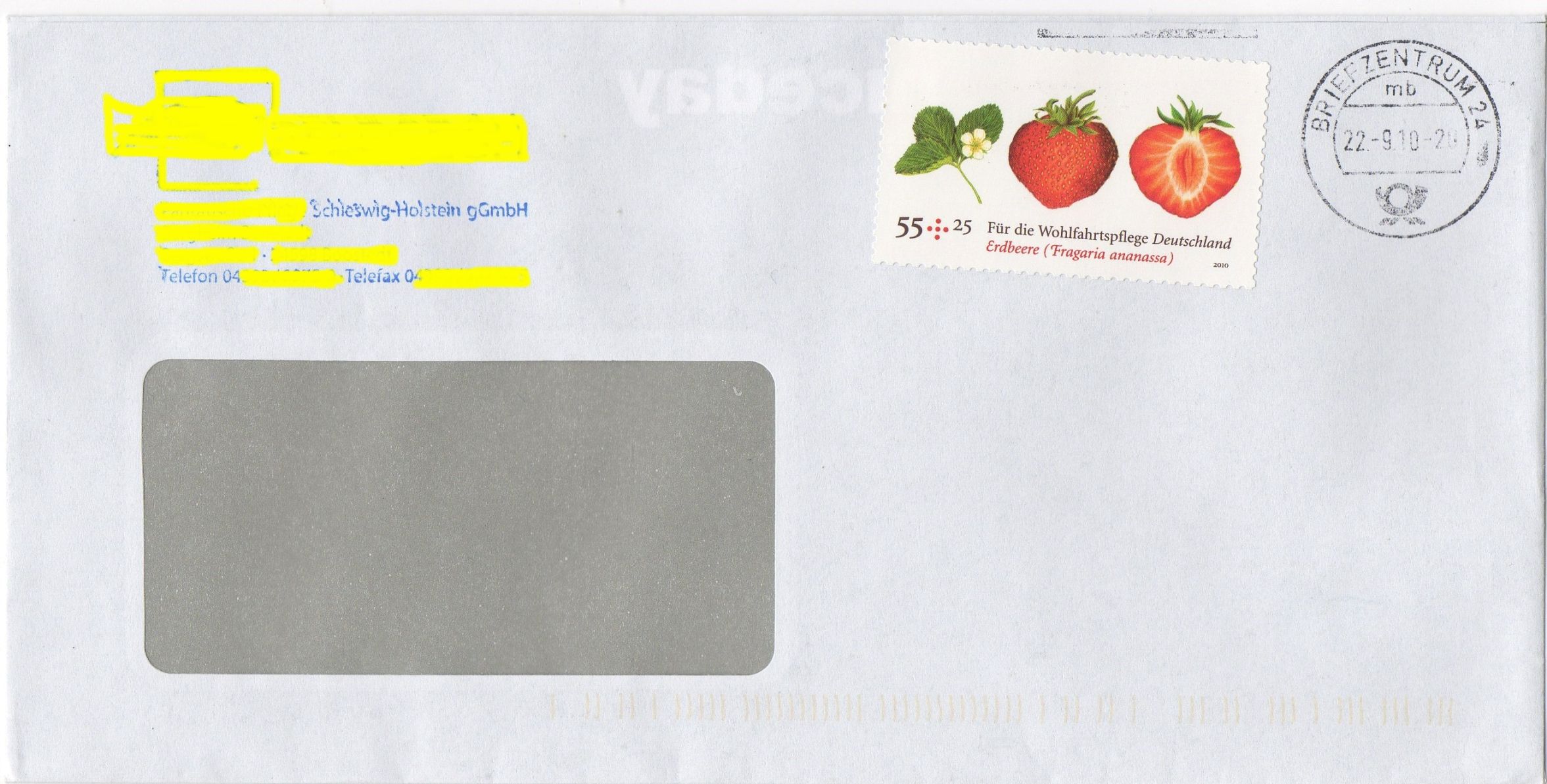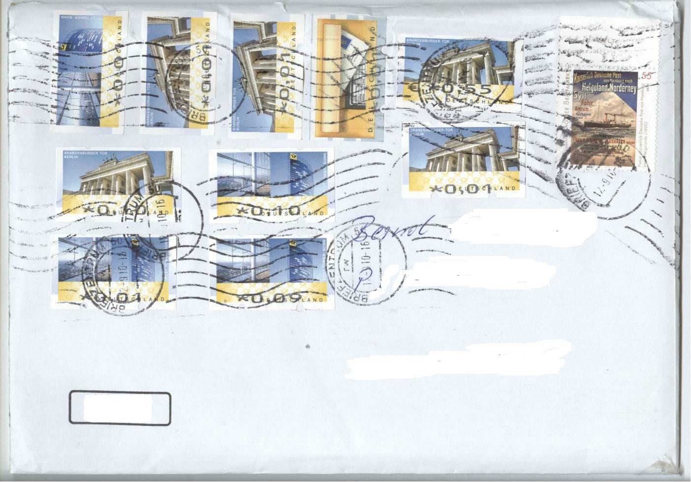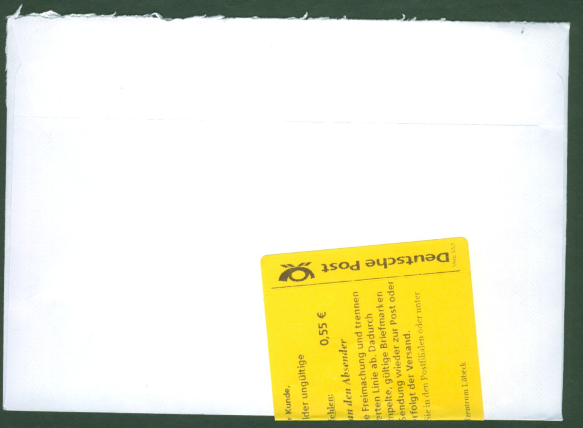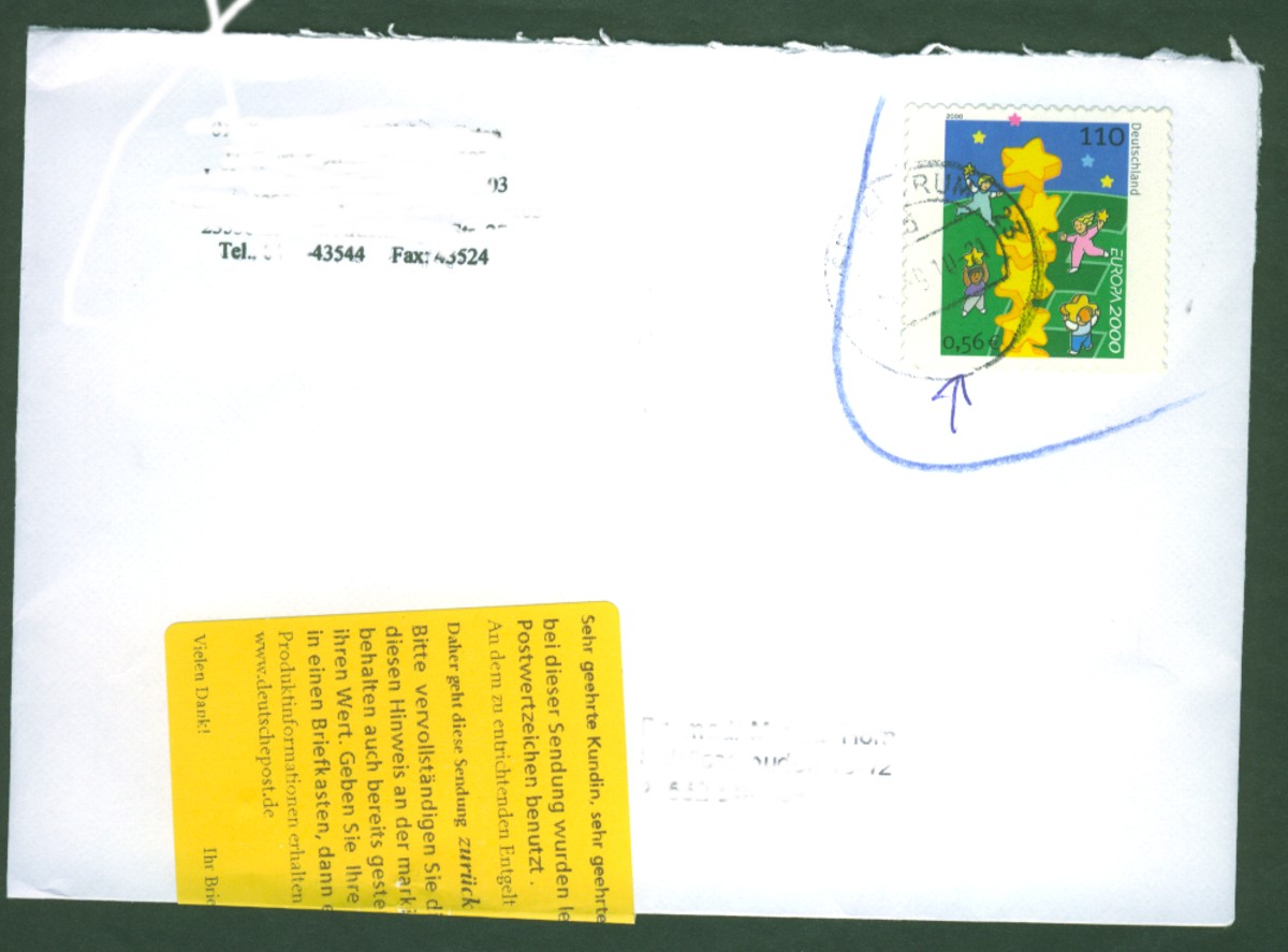 Hier habe ich einen weiteren Beleg dafür, dass die Stempel im BZ 24 nicht immer richtig eingestellt sind! Neben dem Kopfsteher-Rollenstempel gibt es auch einen Maschinenstempel für Standardsendungen, welcher hin und wieder sein Ziel - die Briefmarke oben rechts - verfehlt!