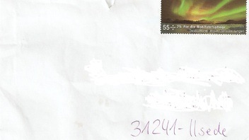 @ Bernd HL: Die Marken auf dem R-Brief sind ja auch nicht so toll aufgeklebt worden, so dass die untere Marke bereits von der Codierung getroffen wurde und die mittlere gleich zwei - sehr unsaubere - Teilstempel abbekommen hat. "Philatelistische Postfiliale" wird das wohl kaum werden... Da macht doch die Doppelstempelung oben schon nicht mehr viel aus...