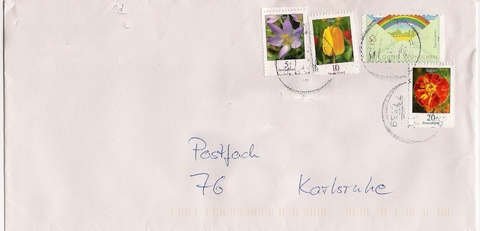 Jetzt noch was, was wirklich Stempelfrust ist. Noch dazu wohl ein Postbeamter, der nicht weiß, wie man Marken abreißt...aber immerhin hat der Krokus ne Zählnummer auf der Rückseite...