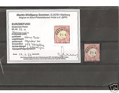 Dein hier gezeigtes Exemplar ist lediglich für "Stempelsammler" sehr interessant. Womöglich liegt der erzielbare Nettopreis für die Marke mit Befund, bei Michelnotierung von €uro 5,-- bei max. 50% , incl. Versand.