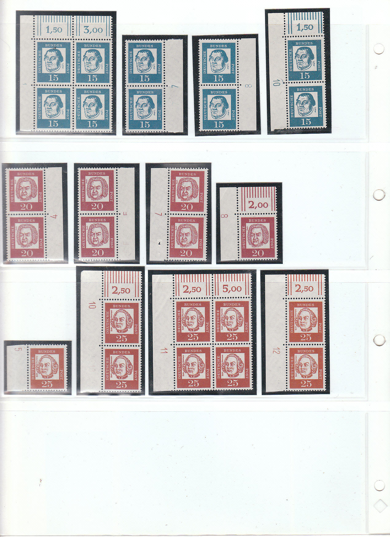 Hier einmal ein paar Druckerzeichen, welche die Bogen bis einschließlich des 25-Pfg.-Wertes zeigen.