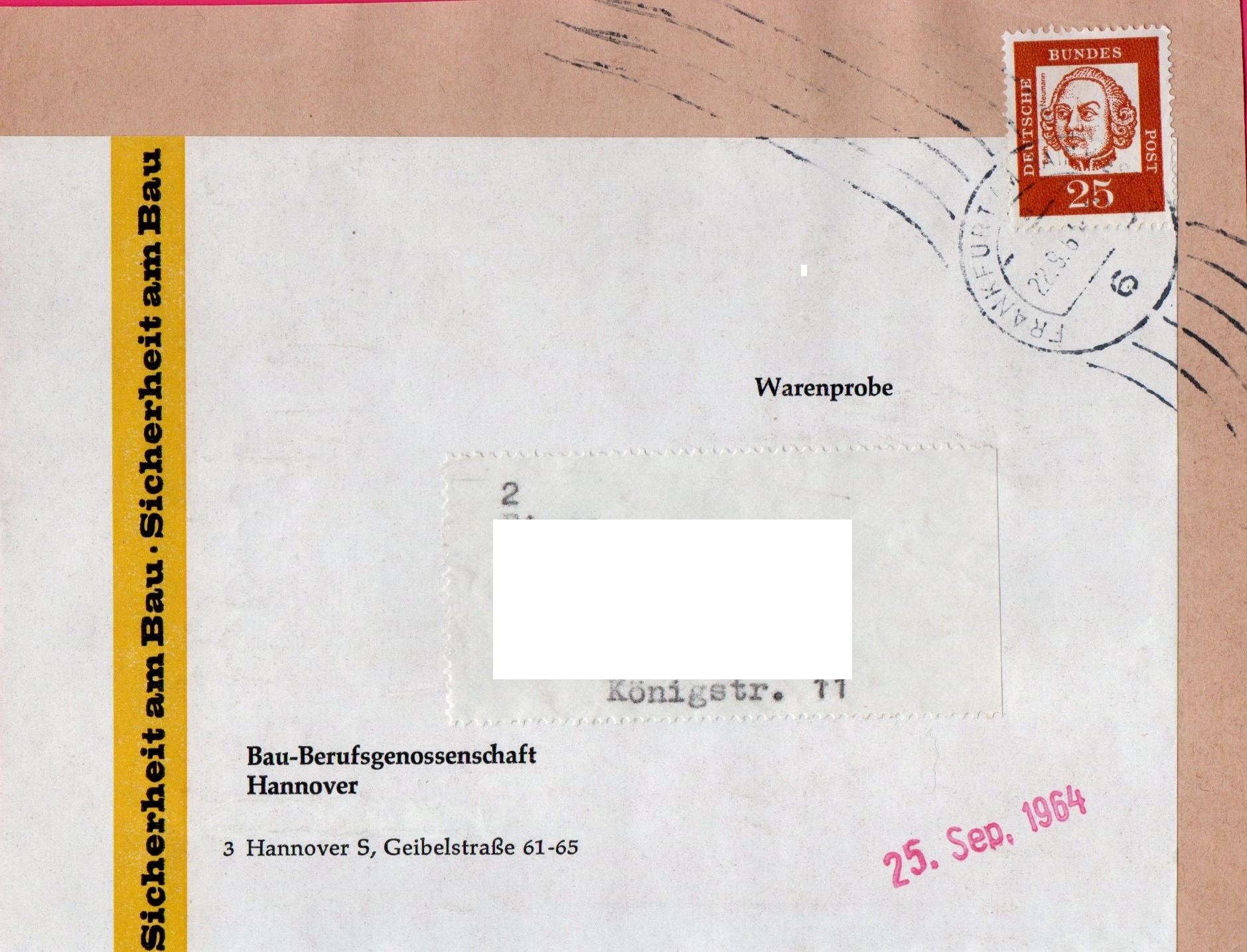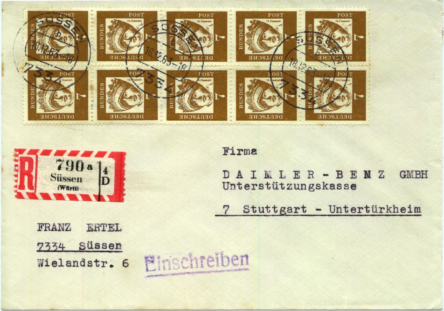 Ich setzte das Porto von 210 Pfennigen wie folgt zusammen: Nachnahme 80 Pf / Einschreiben 80 Pf / Brief 20-100g 50 Pf.