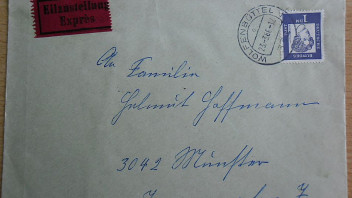 Diese verfälschten Briefmarken wurden quasi „umsonst mit gestempelt“, denn für das Porto des Briefes wären sie nicht nötig gewesen: 20 Pfennig Fernbrief + 50 Pfennig Einschreiben + 60 Pfennig Eilzustellung = 1,30 DM. Frankiert sind aber insgesamt schon mit den echten Briefmarken: 1,37 DM. Somit kleben die Spielereien sowieso einfach nur zusätzlich mit drauf.