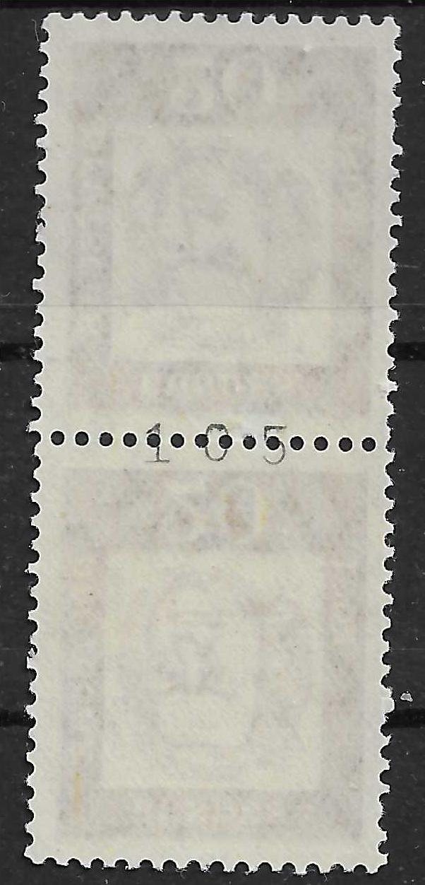 Rollenmarke mit Zählnummer, welche durch die Stellung zwischen den Marken auf der Zähnung dem Postbeamten wohl wenig geholfen hat.