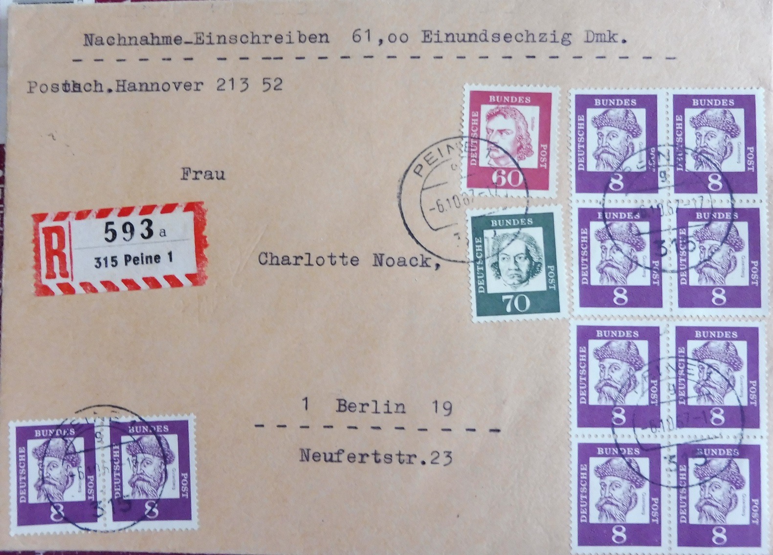 Ich würde dies so zusammensetzen: Nachnahme = 80 Pf / Einschreiben = 80 Pf und Brief bis 100g = 50 Pf