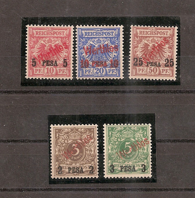 Mi.-Nr. 1 - 5 ungebraucht mit rotem Handstempelaufdruck "WERTLOS"
