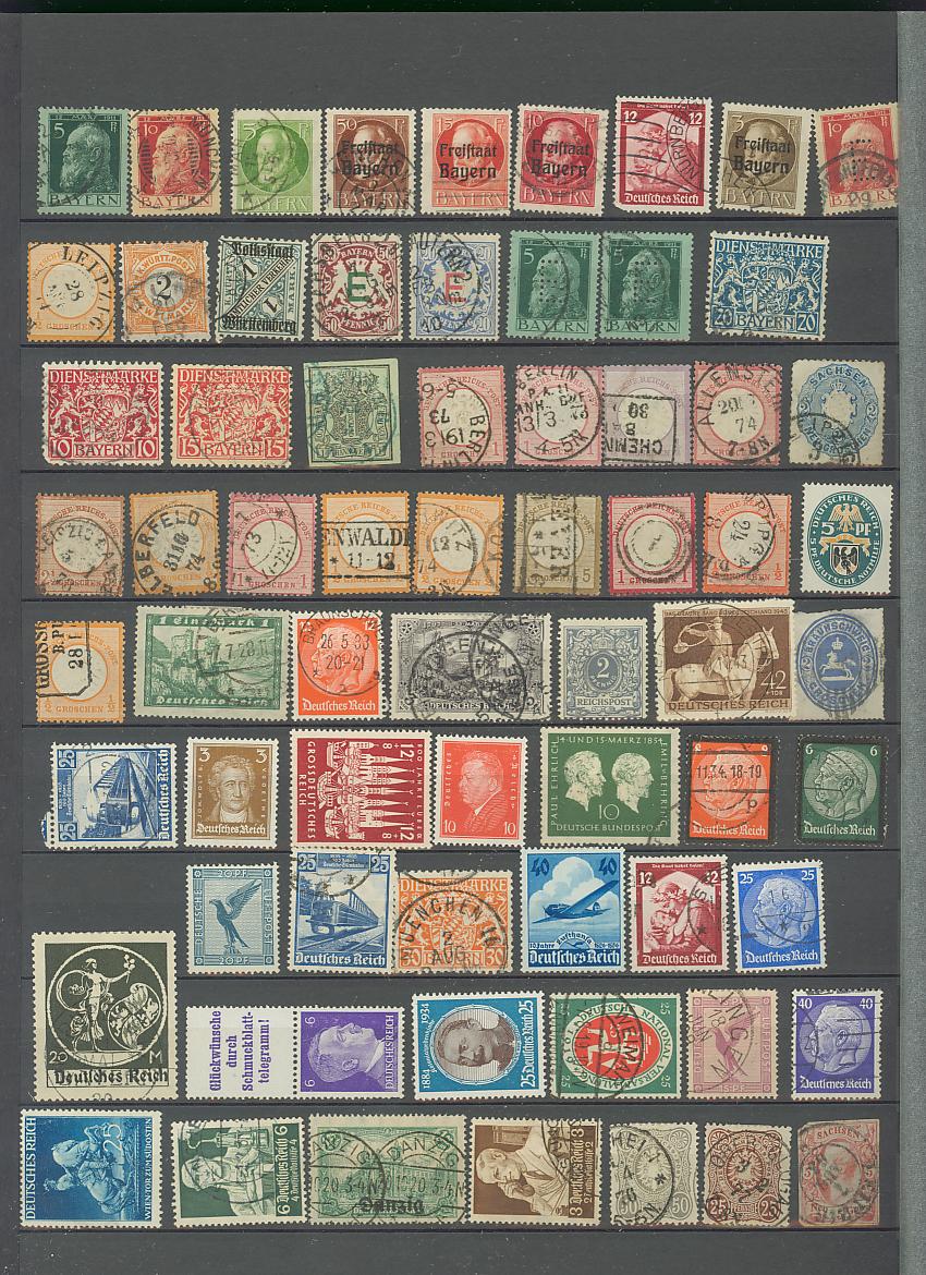 Die Qualität ist anscheinend auch recht unterschiedlich: Die beiden Thurn & Taxis-Marken sehen dem Scan zufolge ganz gut aus, während die allermeisten anderen Altdeutschland-Marken und auch einige bessere moderne Marken (Dt. Reich, Bund, Berlin) wohl kleinere oder größere Erhaltungsmängel aufweisen. Die Wertschätzung kommt natürlich auch auf den Fortschritt der eigenen Sammlung bzw. die individuelle Spezialisierung an.