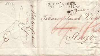 Der Brief hätte auch über Freilassing - Salzburg laufen können. Hierfür hätten die 12 Kr. gereicht (leider kann ich die Rückseite deines Briefes nicht öffnen und bekomme nur eine Fehlermeldung). Bei der Leitung über Braunau am Inn verteuerte sich der Brief um 2 Kr. rheinisch, was verschmerzbar war.