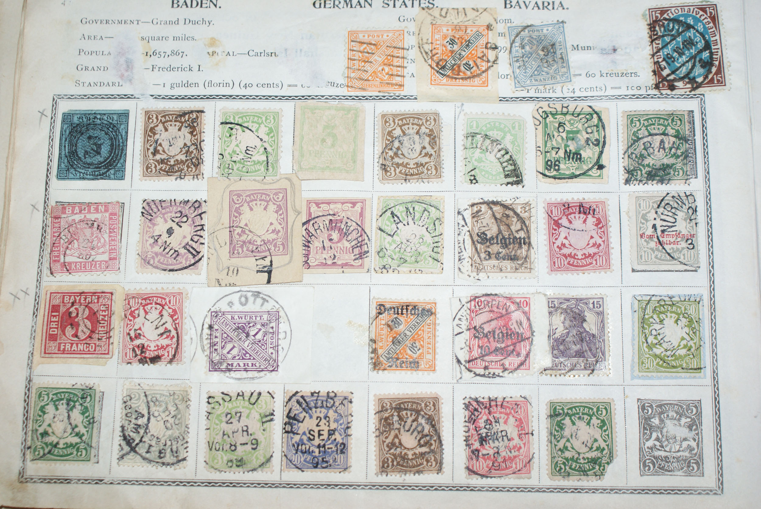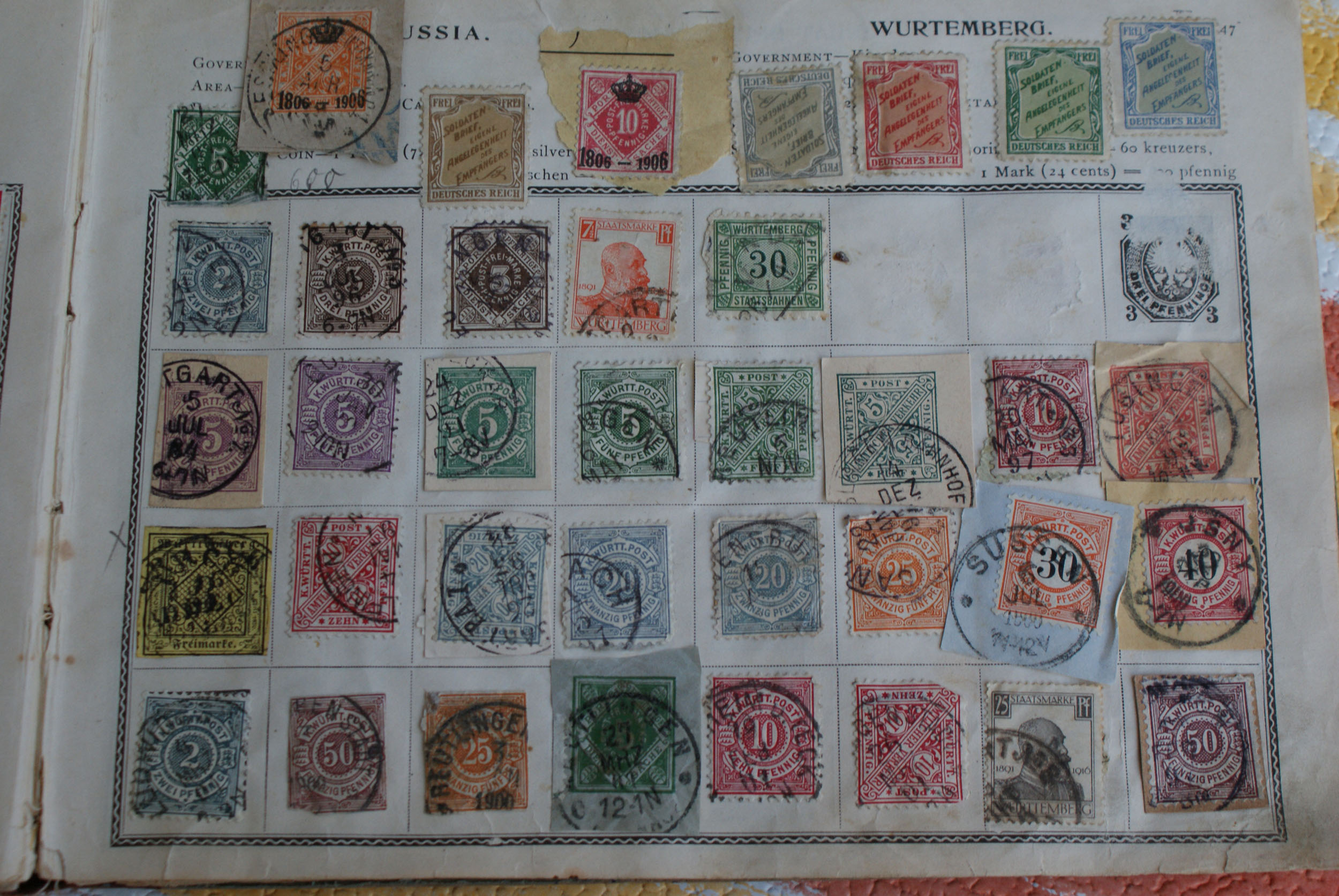 Hab sie mir mal angeschaut, teilweise in sehr schlechtem Zustand, eingerissen, Ecken abgerissen usw. Kann Dir bei den Auslandsmarken leider nicht weiterhelfen. Solltest Altdeutschland bzw. Württemberg haben dann kann ich Dir schon eher helfen :D. Die Würrtemberg 5Pfennig Dienstmarke die dabei ist, ist in recht schlechtem Zustand.