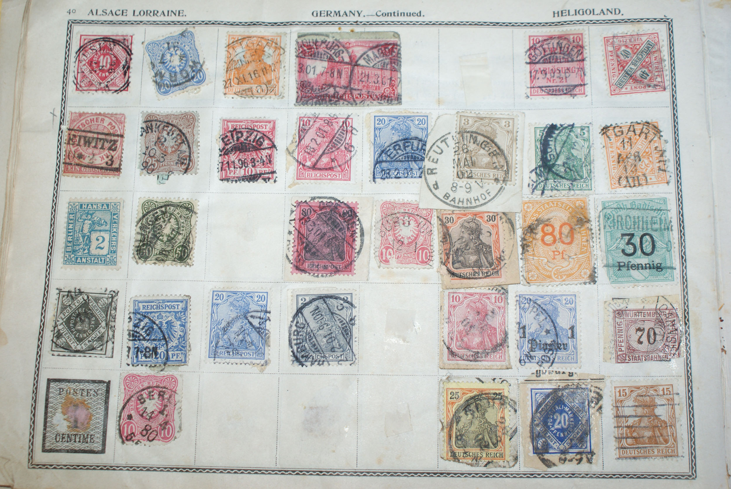 Hab sie mir mal angeschaut, teilweise in sehr schlechtem Zustand, eingerissen, Ecken abgerissen usw. Kann Dir bei den Auslandsmarken leider nicht weiterhelfen. Solltest Altdeutschland bzw. Württemberg haben dann kann ich Dir schon eher helfen :D. Die Würrtemberg 5Pfennig Dienstmarke die dabei ist, ist in recht schlechtem Zustand.