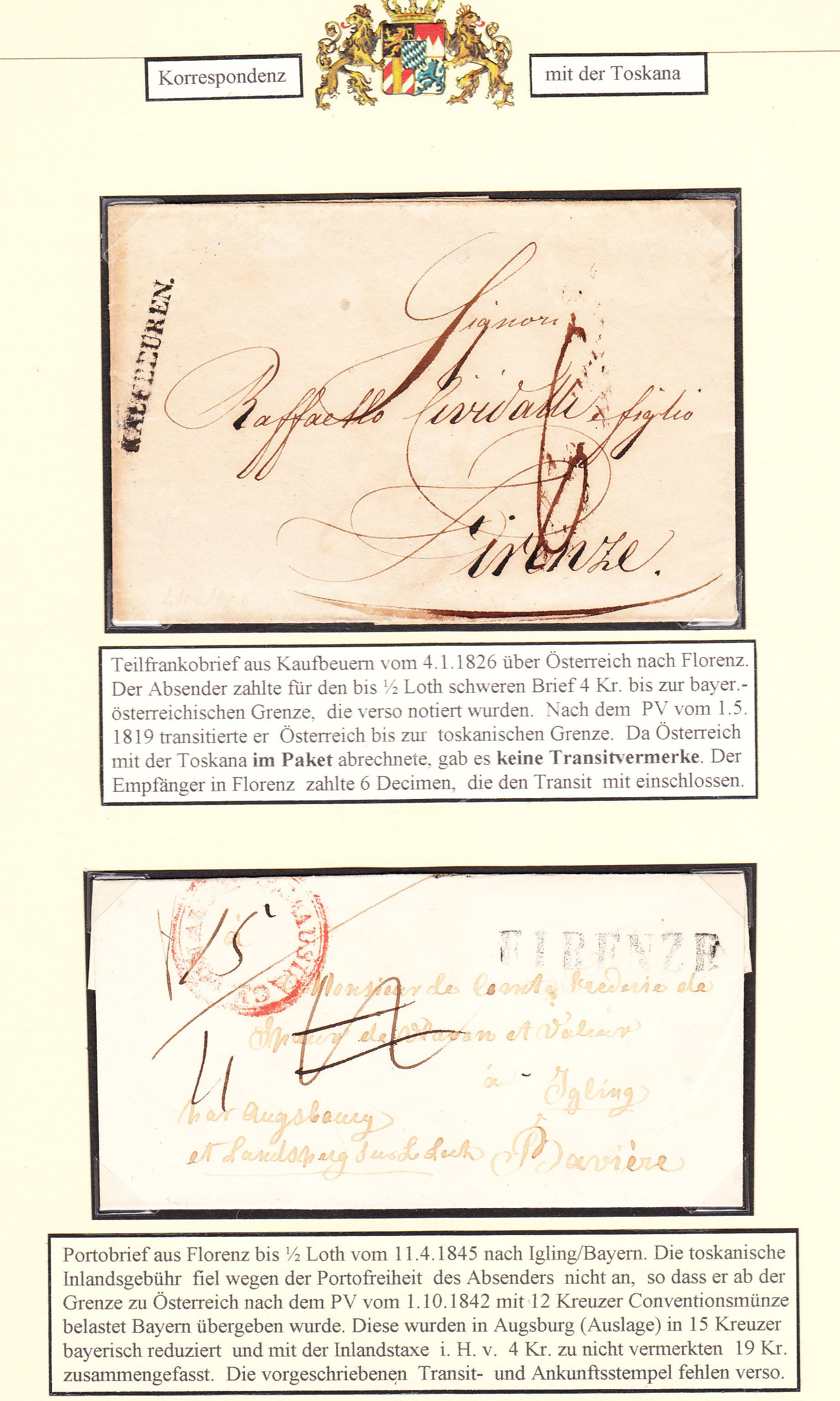 nachdem wir auf PN - Ebene ausdiskutiert haben, dass dein wunderbarer Indienbrief zwar nach Norden fehlgeroutet wurde (Ala - Verona liegt nördlich zum Zielort Neapel), aber nicht beweisbar in Österreich bzw. Bayern war, zeige ich eine Seite Bayerns mit dem Großherzogtum der Toskana.