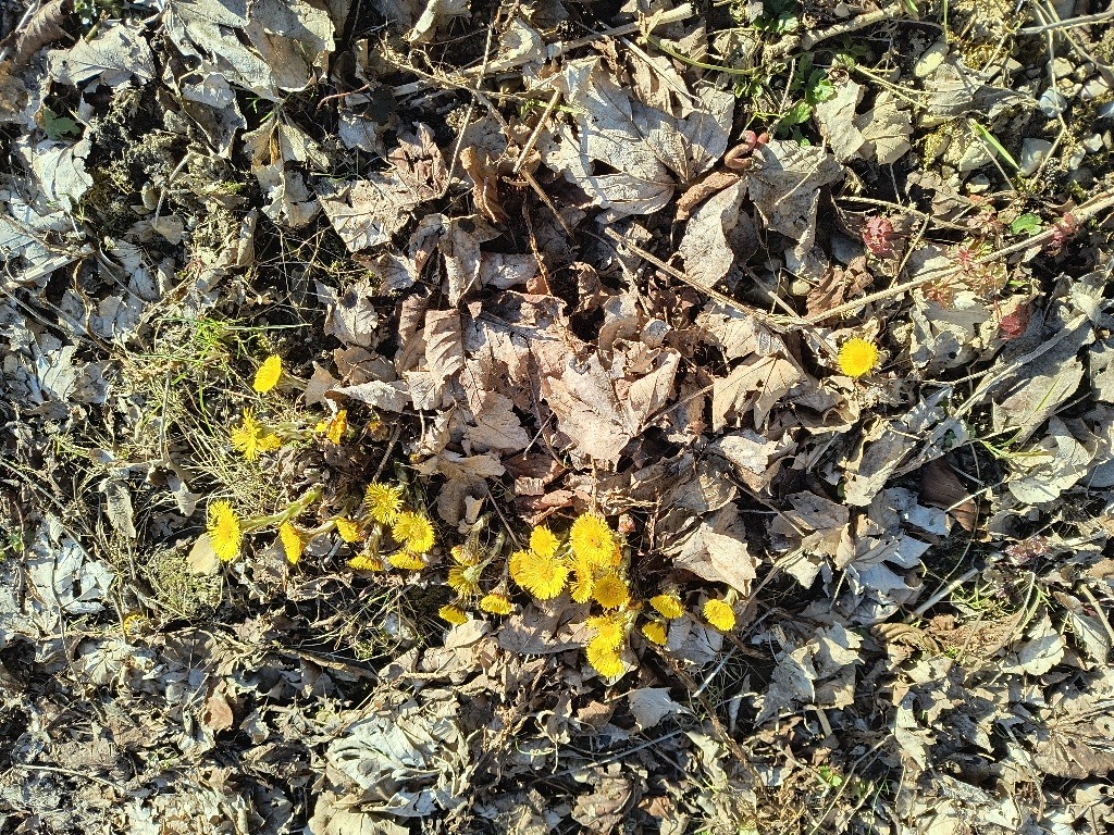 Auch in der freien Natur beginnt es inzwischen zu blühen, nicht nur im Garten. Hier habe ich einen Schwung Huflattich photographiert, gehört ja mit zu den Frühblühern in der Natur. In einem sonnenverwöhnten Winkel dann auch Leberblümchen.