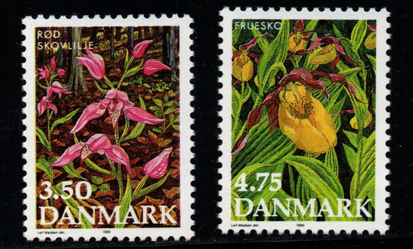 - im Briefmarkenalbum: ich habe mal zwei in Mitteleuropa heimische Orchideen auf dänischen Marken eingescannt
