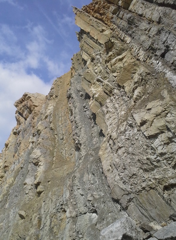 Es handelt sich um steil stehende, überkippte Kalk- und Mergel-Schichten aus dem Oberjura (ca. 250-260 Millionen Jahre alt). Die großen Flächen, auf die man schaut, sind also eigentlich die Unterseiten der Schichten, die durch die Hebung des Harzes in der Kreidezeit so überkippt wurden.