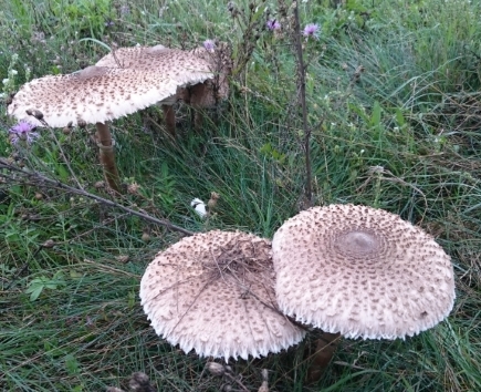 Auf einem Feld nahe eines Waldes standen auch noch Riesenschirmpilze, viele noch geschlossen. Es waren so viele, dass ich ich meinen Kofferraum voll bekommen hätte, unglaublich.