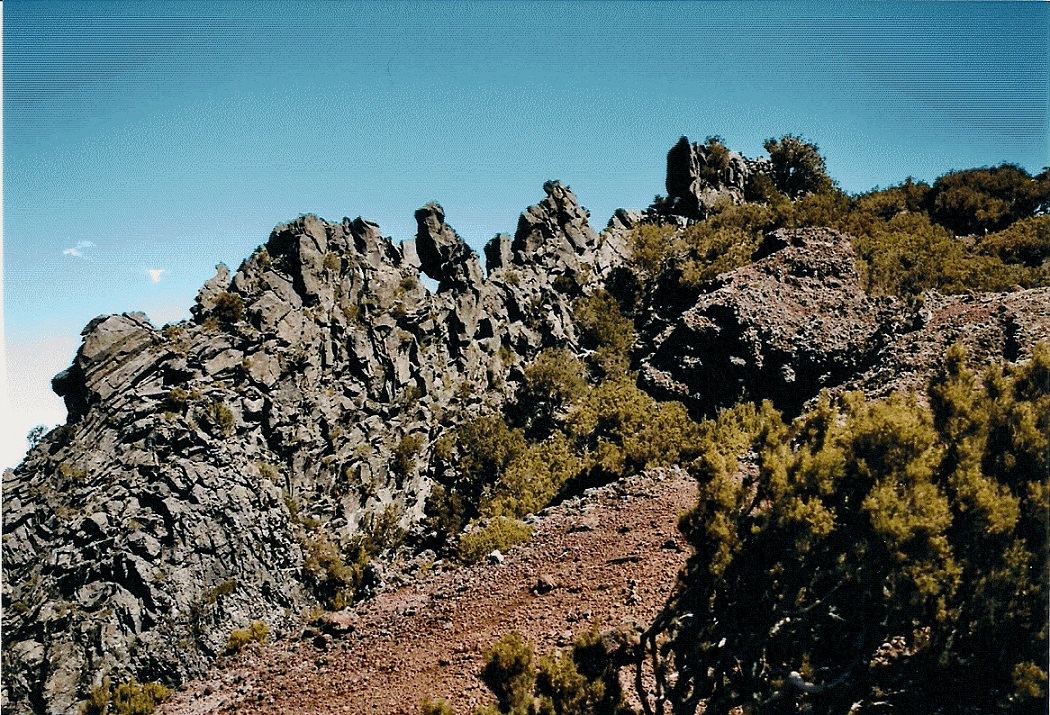 • Madeira, Wanderweg Pico Ruivo in Richtung Encumeada-Pass, bizarre Lavafelsen, 2009.jpg