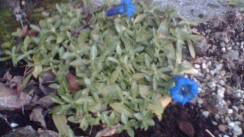 Natürlich blüht ganz jahreszeitgemäß die echte Christrose (helleborus niger praecox), aber die Kissenprimel (primula vulgaris) und der Enzian (gentiana angustifolia) sind viel zu früh (Primel) oder noch sehr, sehr spät (Enzian) dran. Selbst die ersten Veilchen (viola odorata "Königin Charlotte) blühen schon mit zwei Exemplaren.